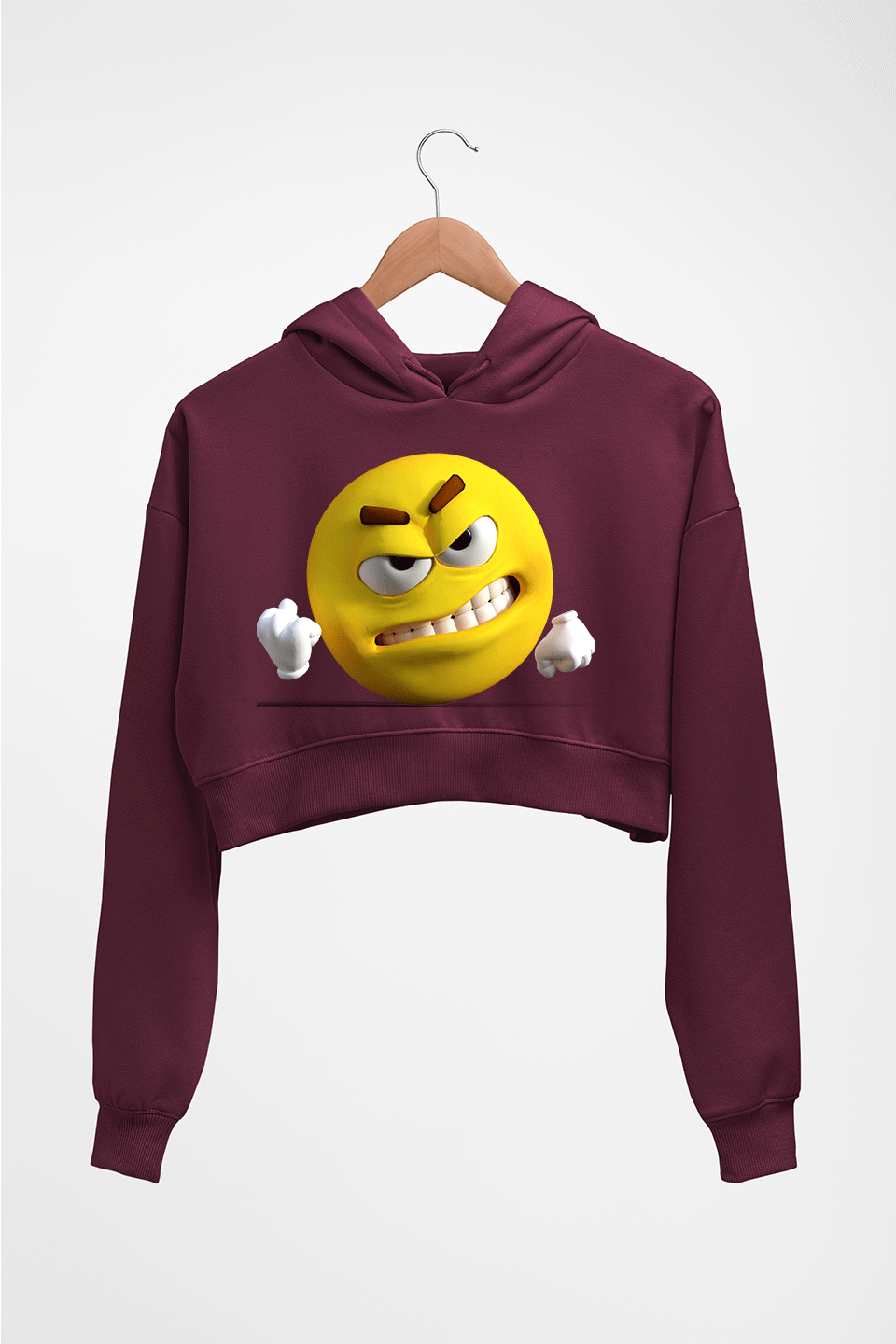 Angry Emoji Crop HOODIE FOR WOMEN-Maroon-Ektarfa.online