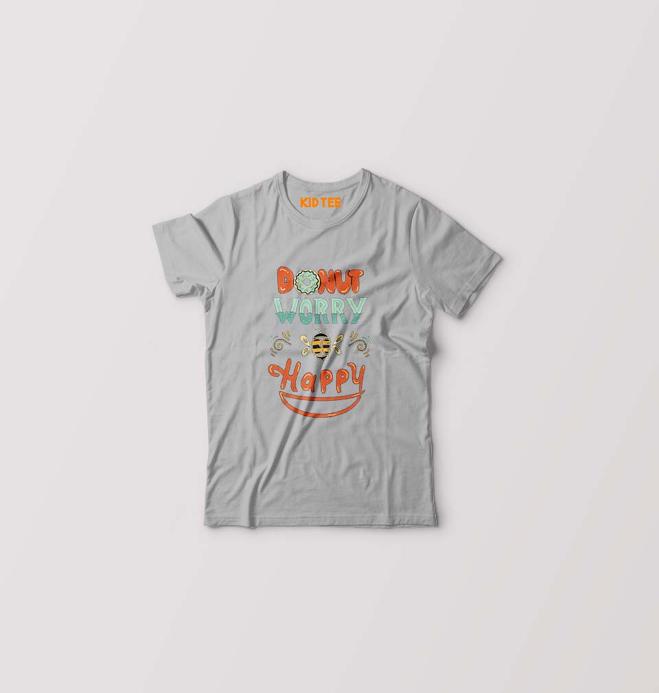 Donut Worry Be Happy Kids T-Shirt for Boy/Girl-Grey-Ektarfa.online