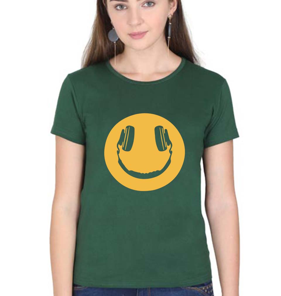 Emoji Headphone Music T-Shirt for Women-Dark Green-Ektarfa.online