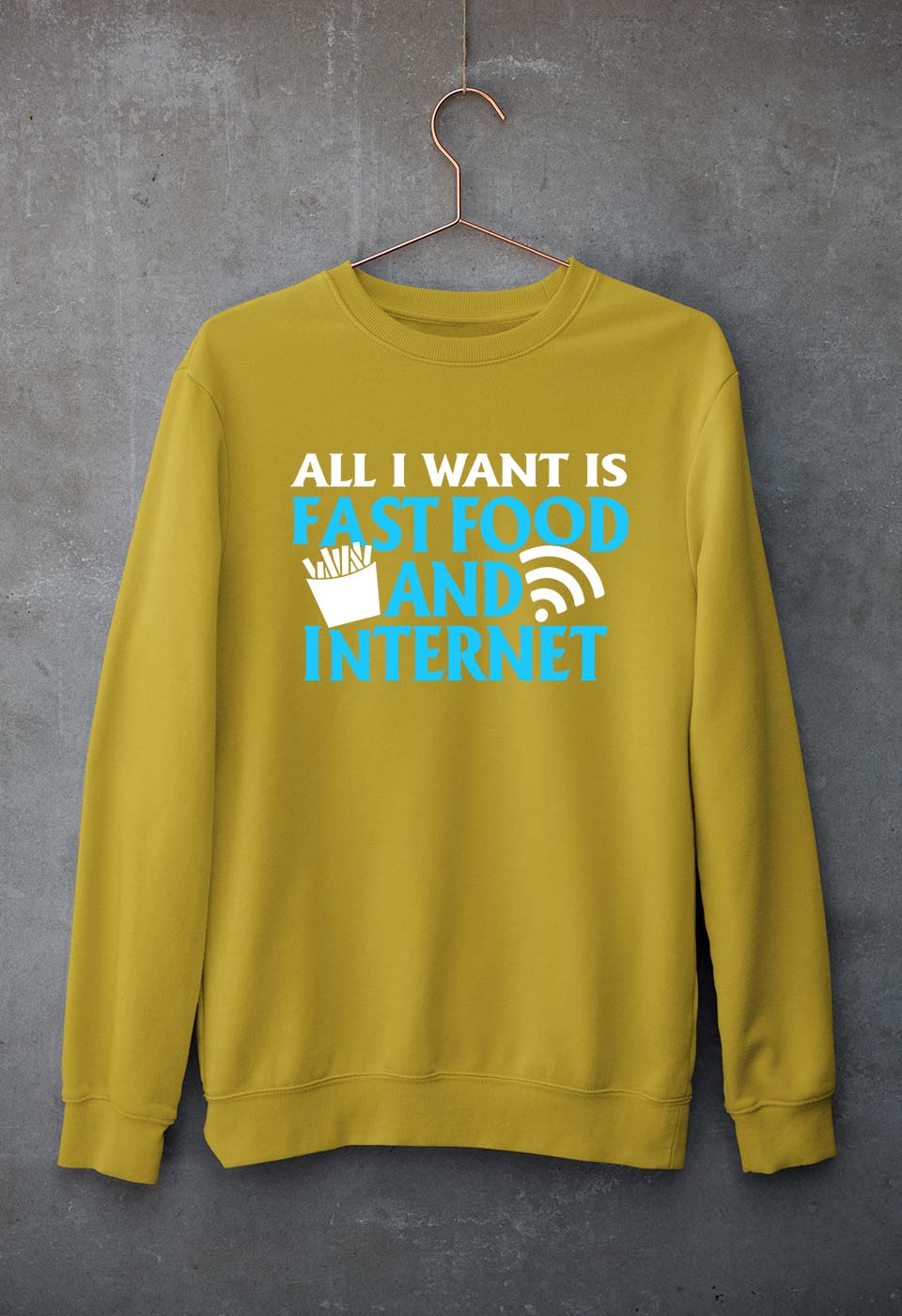 Fast Food and Internet Unisex Sweatshirt for Men/Women-Mustard Yellow-Ektarfa.online