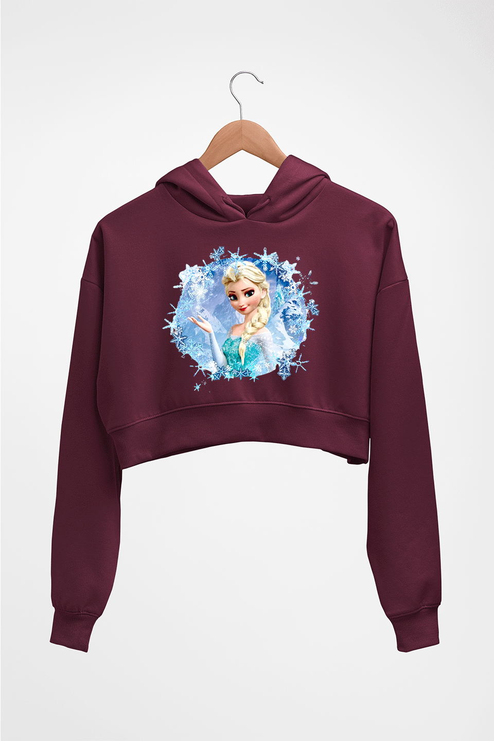 Frozen Elsa Crop HOODIE FOR WOMEN-Maroon-Ektarfa.online
