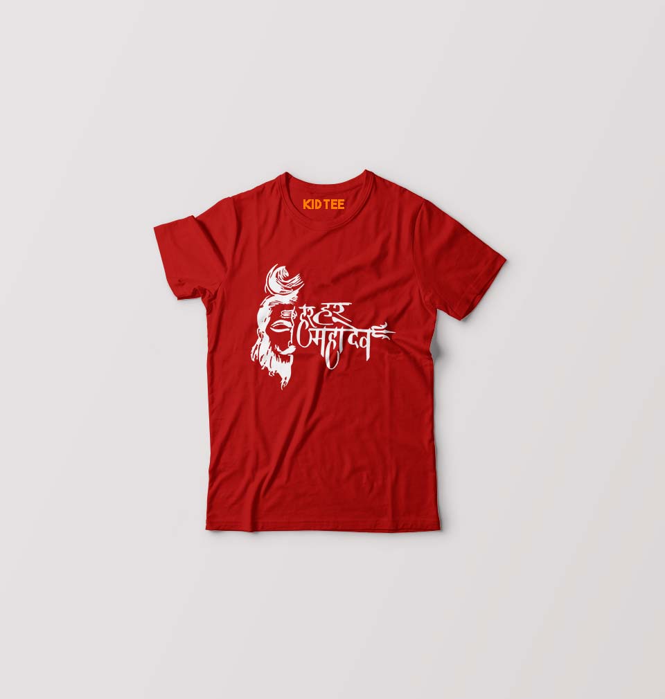 Har Har Mahadev Kids T-Shirt for Boy/Girl-Red-Ektarfa.online