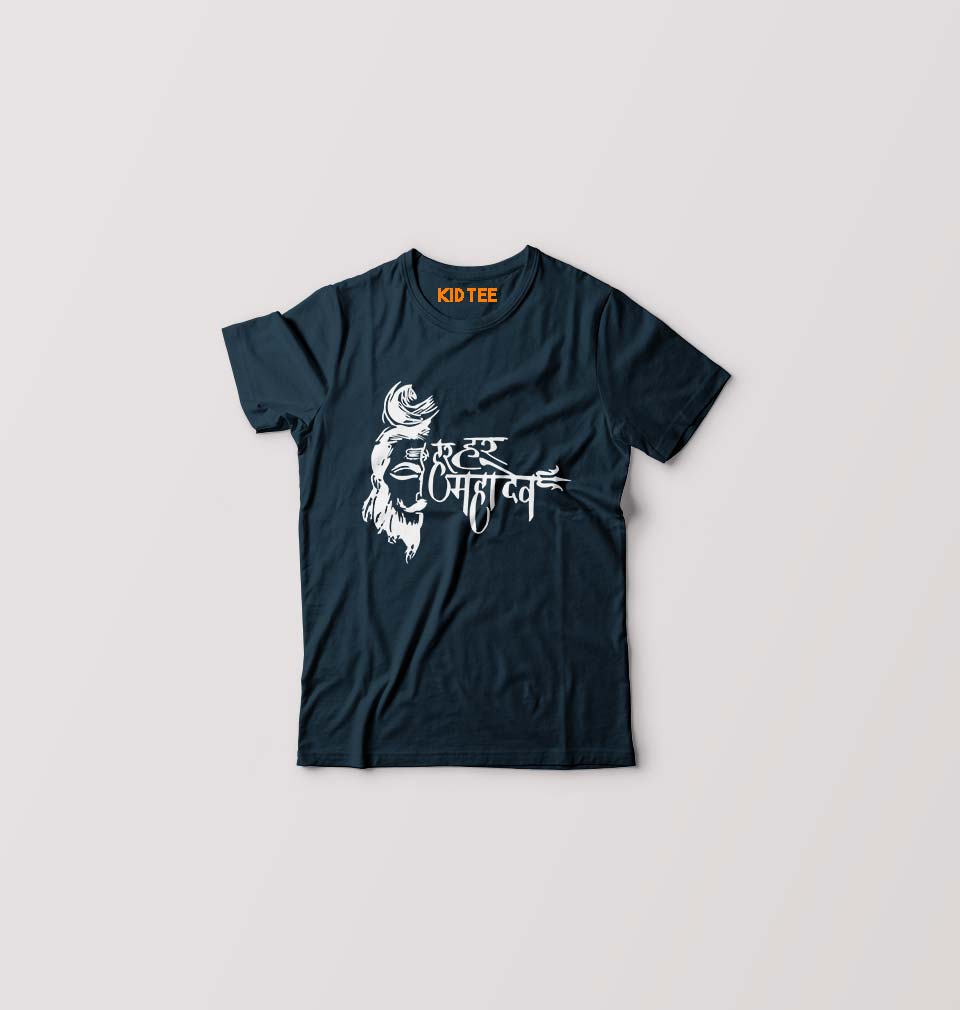 Har Har Mahadev Kids T-Shirt for Boy/Girl-Navy Blue-Ektarfa.online
