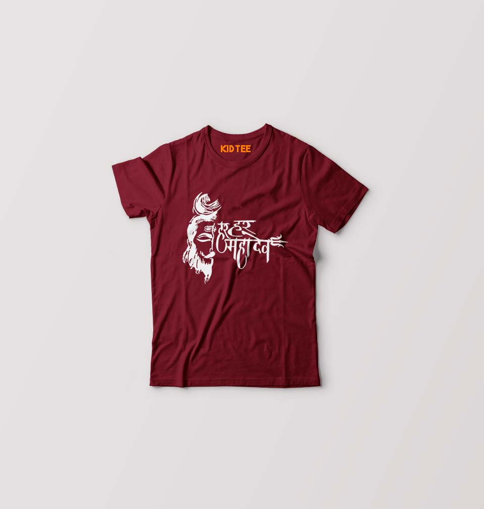 Har Har Mahadev Kids T-Shirt for Boy/Girl-Maroon-Ektarfa.online