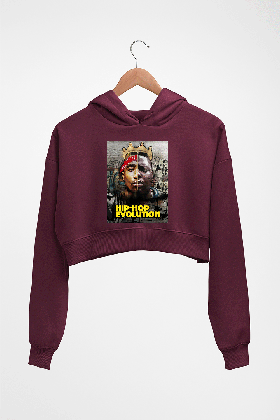 Hip-Hop Evolution Crop HOODIE FOR WOMEN-Maroon-Ektarfa.online