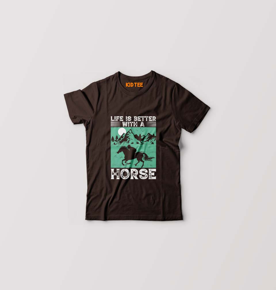 Horse Riding Kids T-Shirt for Boy/Girl-Coffee Brown-Ektarfa.online
