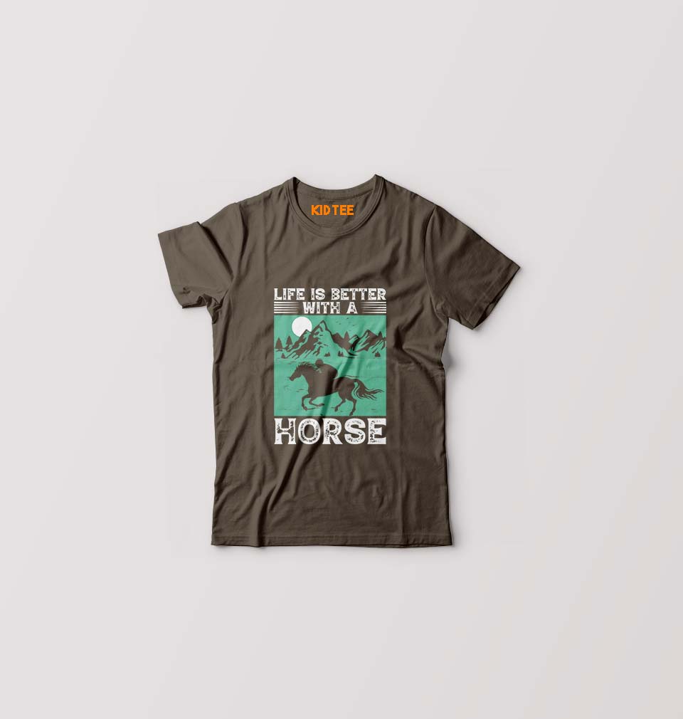 Horse Riding Kids T-Shirt for Boy/Girl-Olive Green-Ektarfa.online