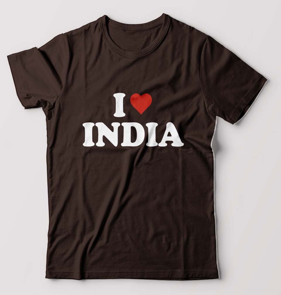 I Love India T-Shirt for Men-Coffee Brown-Ektarfa.online