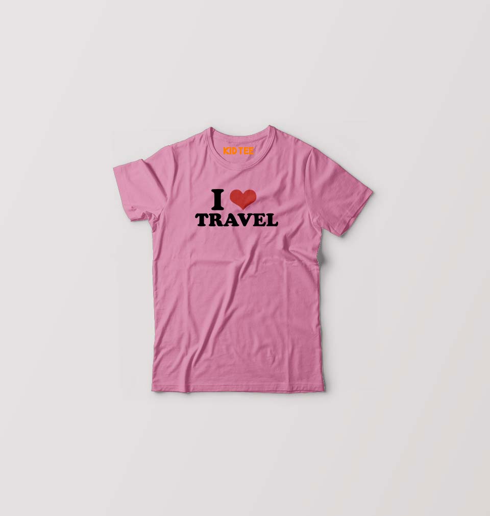I LOVE TRAVEL T-Shirt for Boy/Girl-Pink-Ektarfa.online