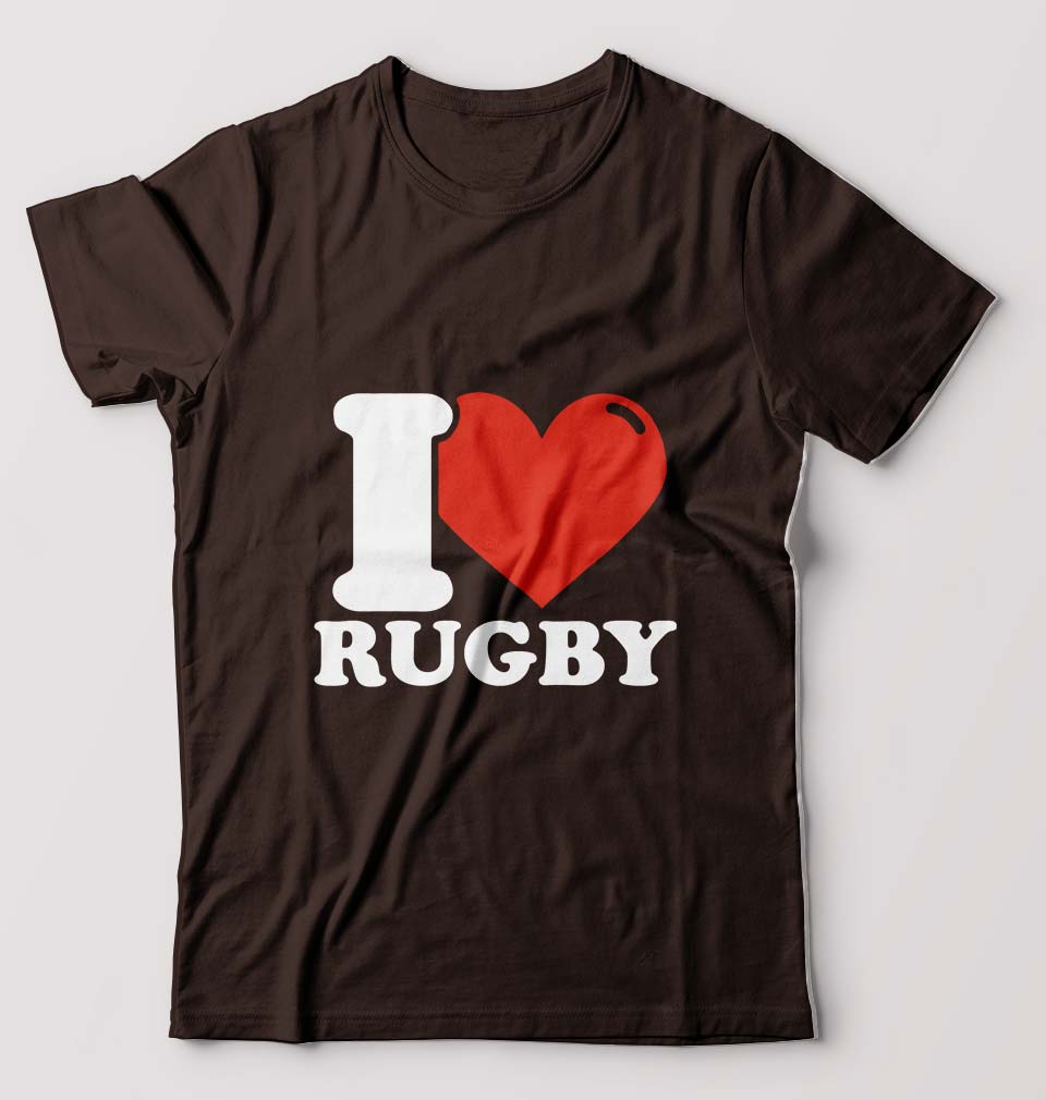 I Love Rugby T-Shirt for Men-Coffee Brown-Ektarfa.online