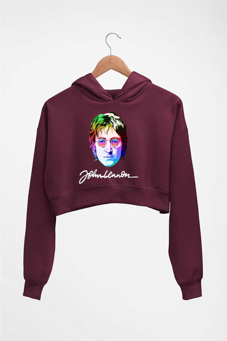 John Lennon Crop HOODIE FOR WOMEN-Maroon-Ektarfa.online