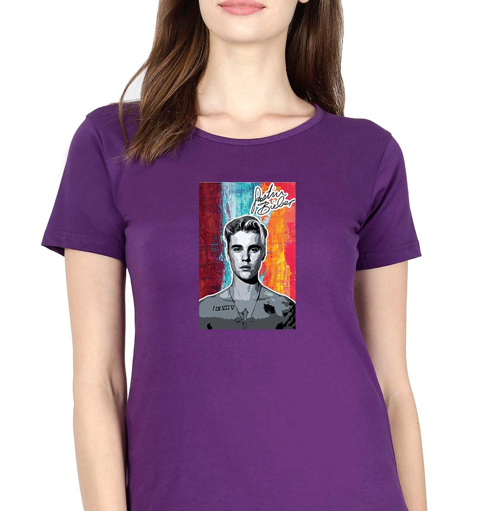 Justin Bieber T-Shirt for Women-Purple-Ektarfa.online