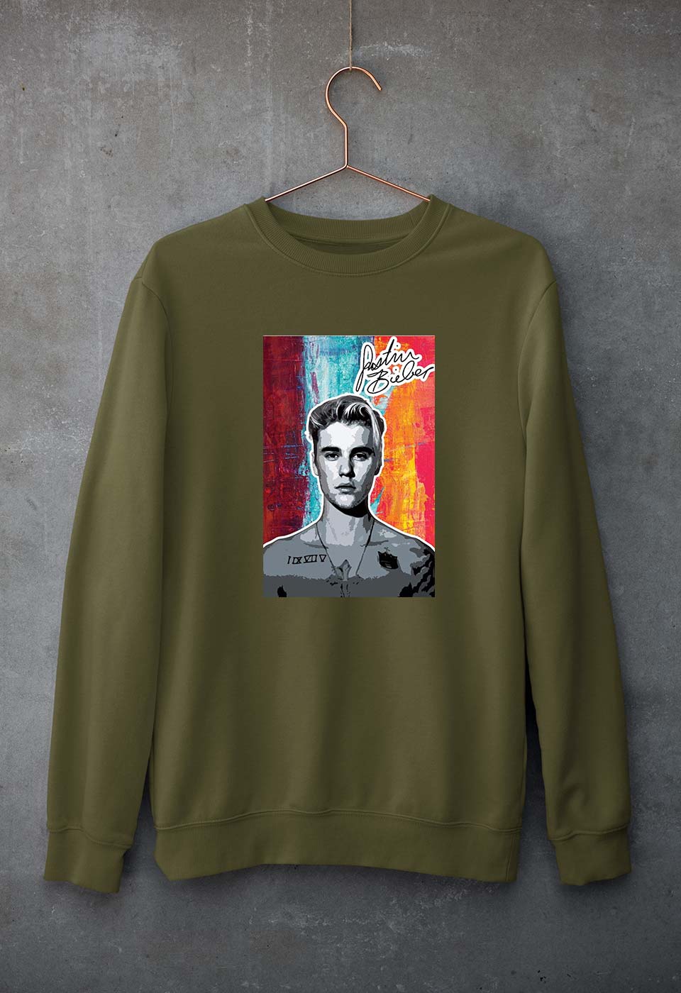 Justin Bieber Unisex Sweatshirt for Men/Women-Olive Green-Ektarfa.online