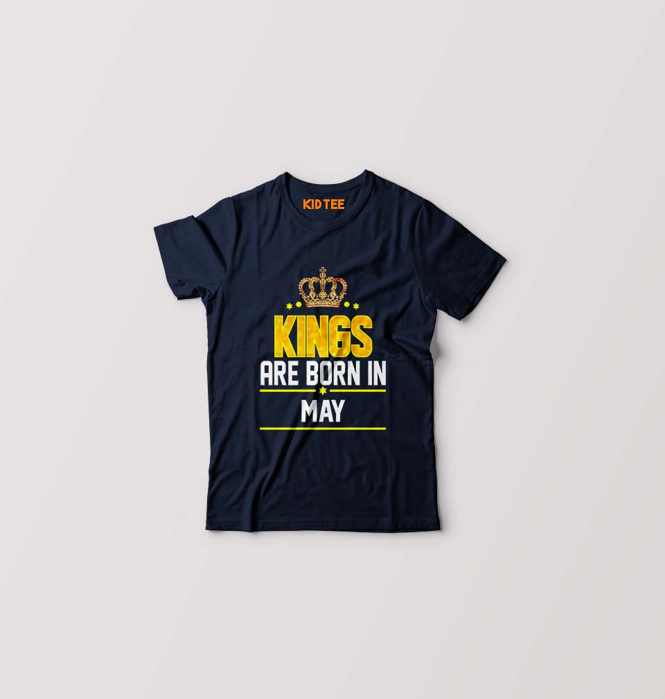 Kings Are Born In May Kids T-Shirt for Boy/Girl-Navy Blue-Ektarfa.online