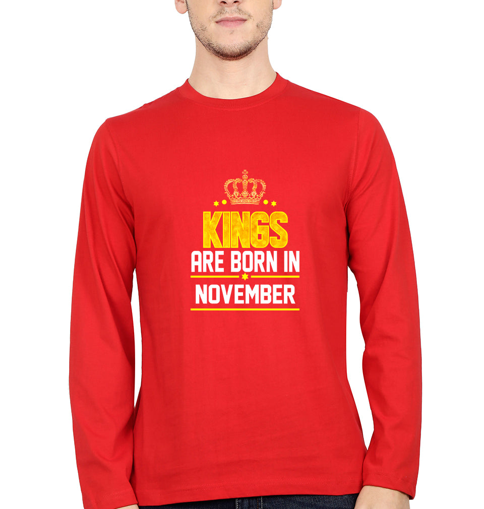 Kings Are Born In November Full Sleeves T-Shirt for Men-Red-Ektarfa.online