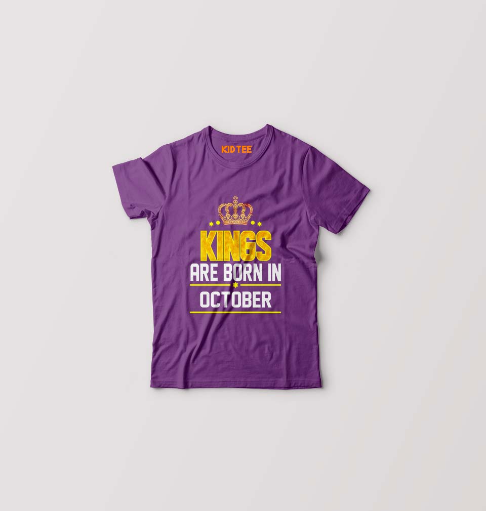 Kings Are Born In October Kids T-Shirt for Boy/Girl-Purple-Ektarfa.online
