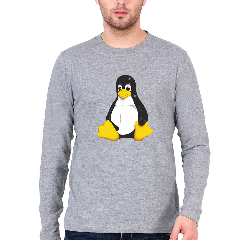 Linux Full Sleeves T-Shirt for Men-Grey Melange-Ektarfa.online