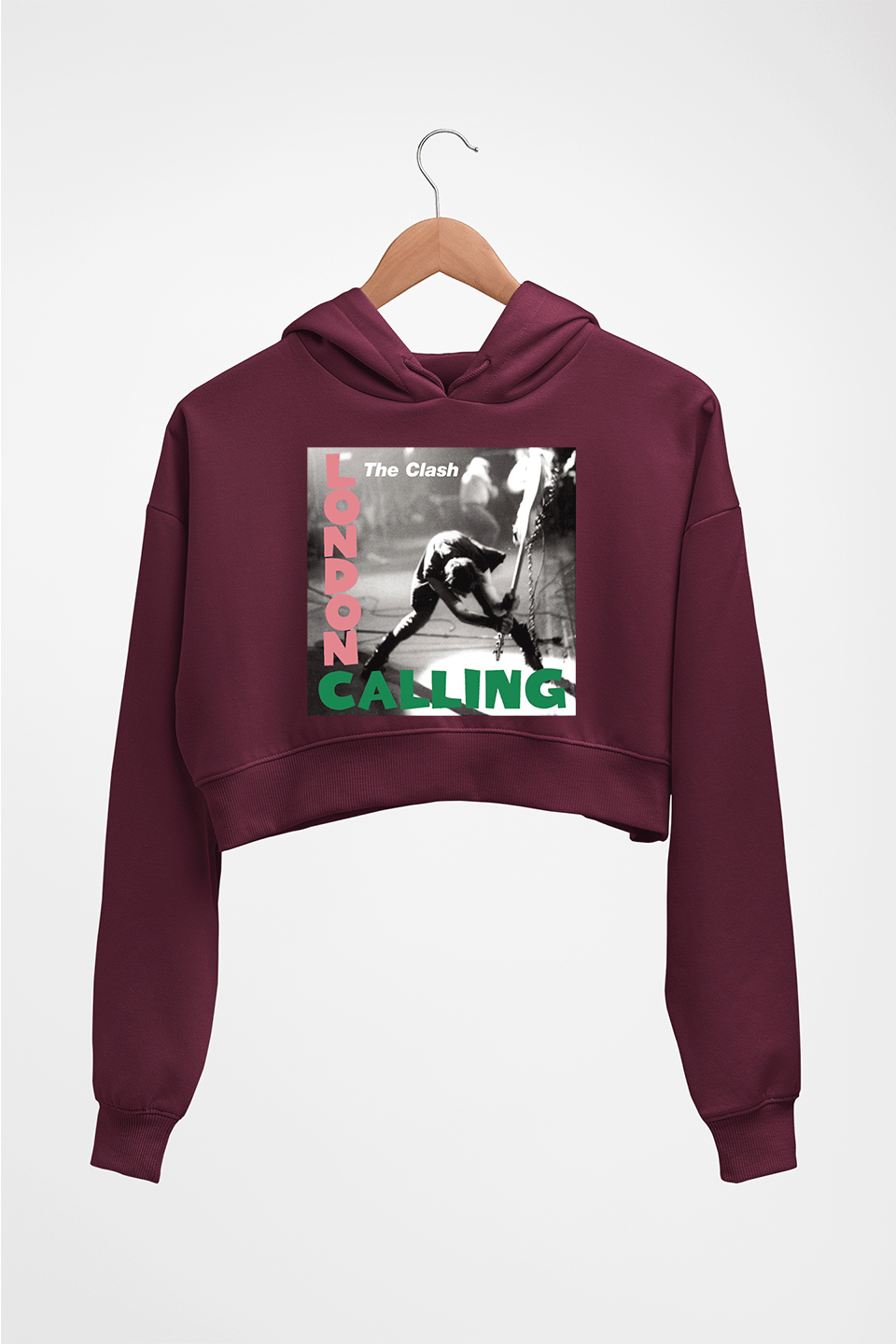 London Calling Crop HOODIE FOR WOMEN-Maroon-Ektarfa.online