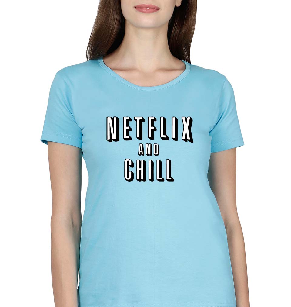 Netflix and Chill T-Shirt for Women-Light Blue-Ektarfa.online