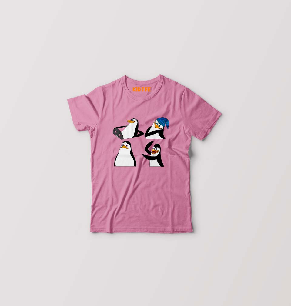 Penguins of Madagascar Kids T-Shirt for Boy/Girl-Pink-Ektarfa.online
