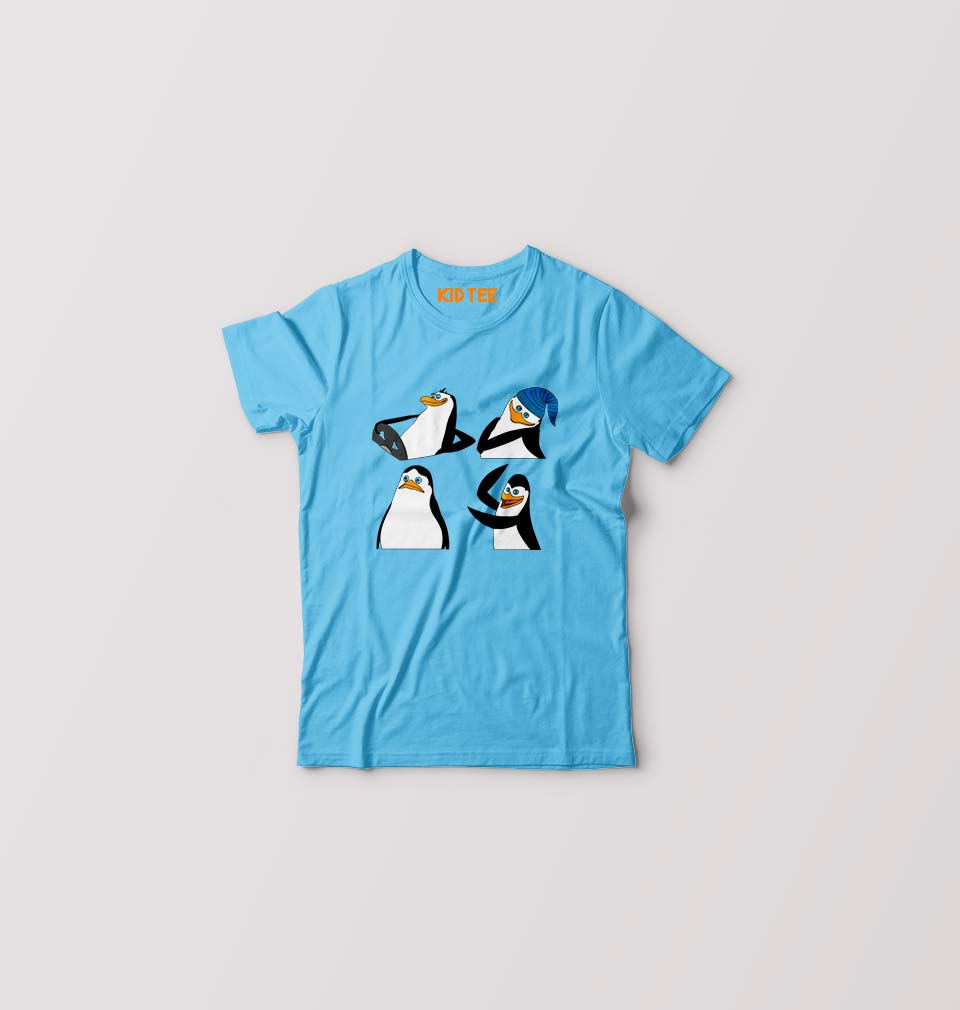 Penguins of Madagascar Kids T-Shirt for Boy/Girl-Sky Blue-Ektarfa.online