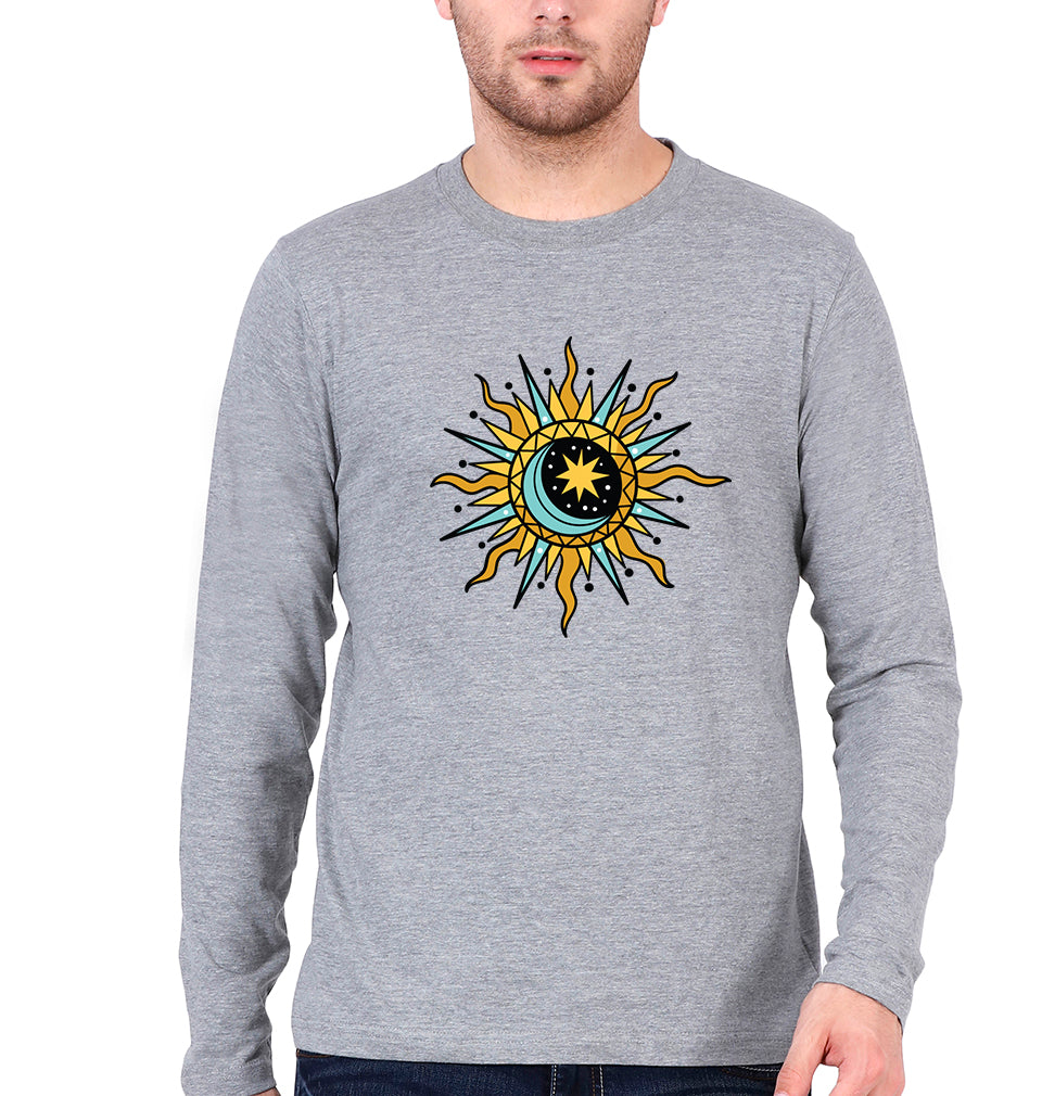 Psychedelic Chakra Full Sleeves T-Shirt for Men-Grey Melange-Ektarfa.online