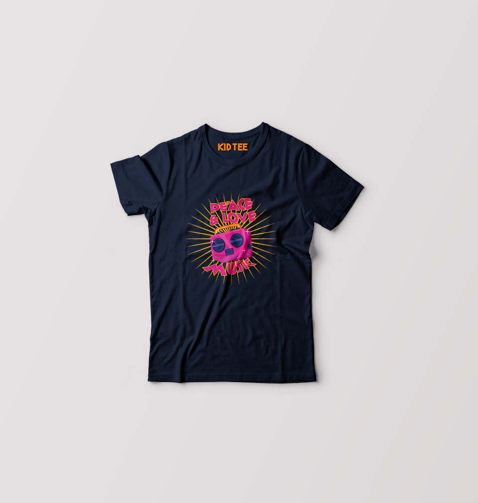 Psychedelic Music Peace Love Kids T-Shirt for Boy/Girl-Navy Blue-Ektarfa.online
