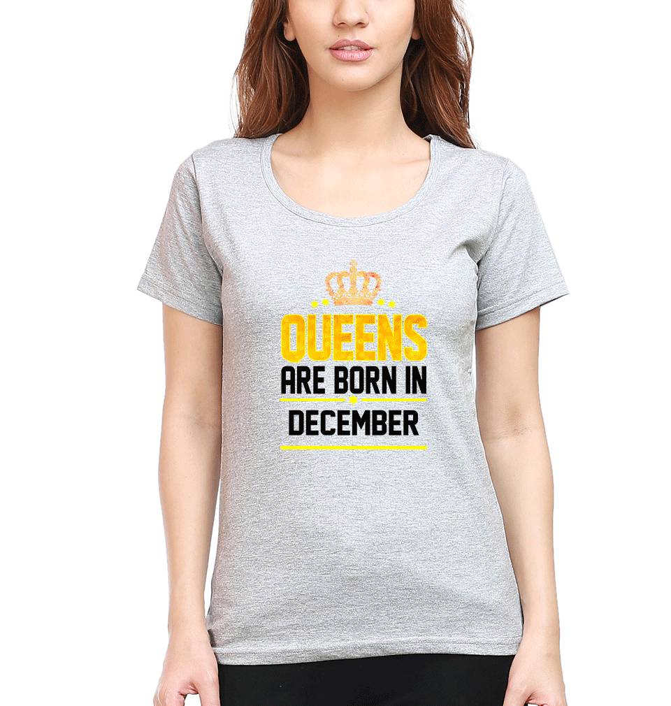 Queens Are Born In December T-Shirt for Women-Grey Melange-Ektarfa.online