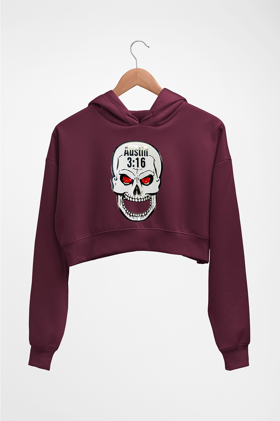 Stone Cold Steve Austin (WWE) Crop HOODIE FOR WOMEN-Maroon-Ektarfa.online