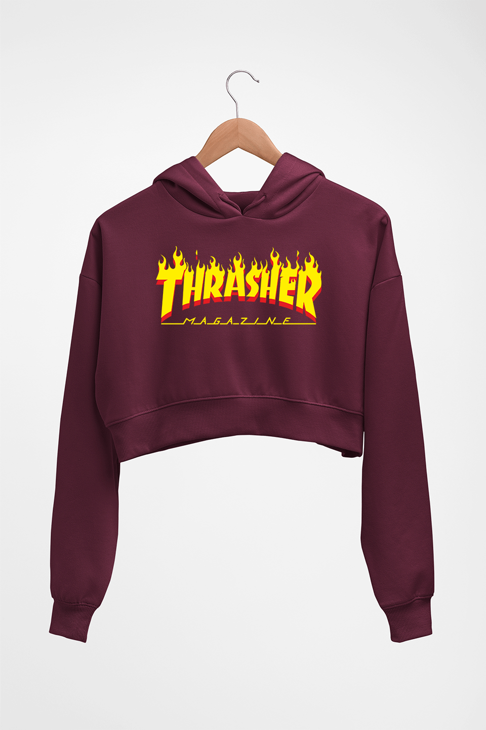 Thrasher Magzine Crop HOODIE FOR WOMEN-Maroon-Ektarfa.online