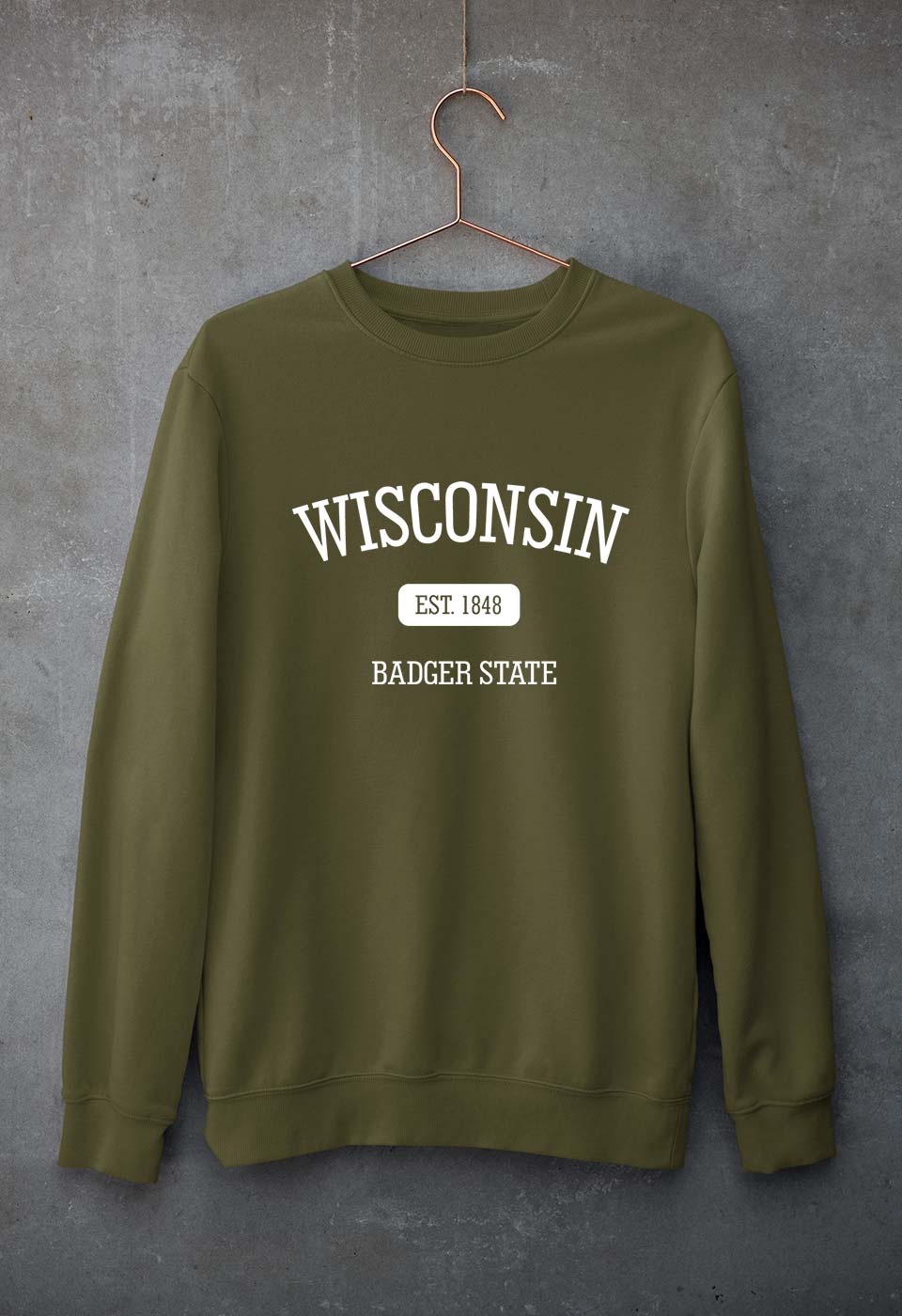 Varsity Wisconsin Unisex Sweatshirt for Men/Women-Olive Green-Ektarfa.online