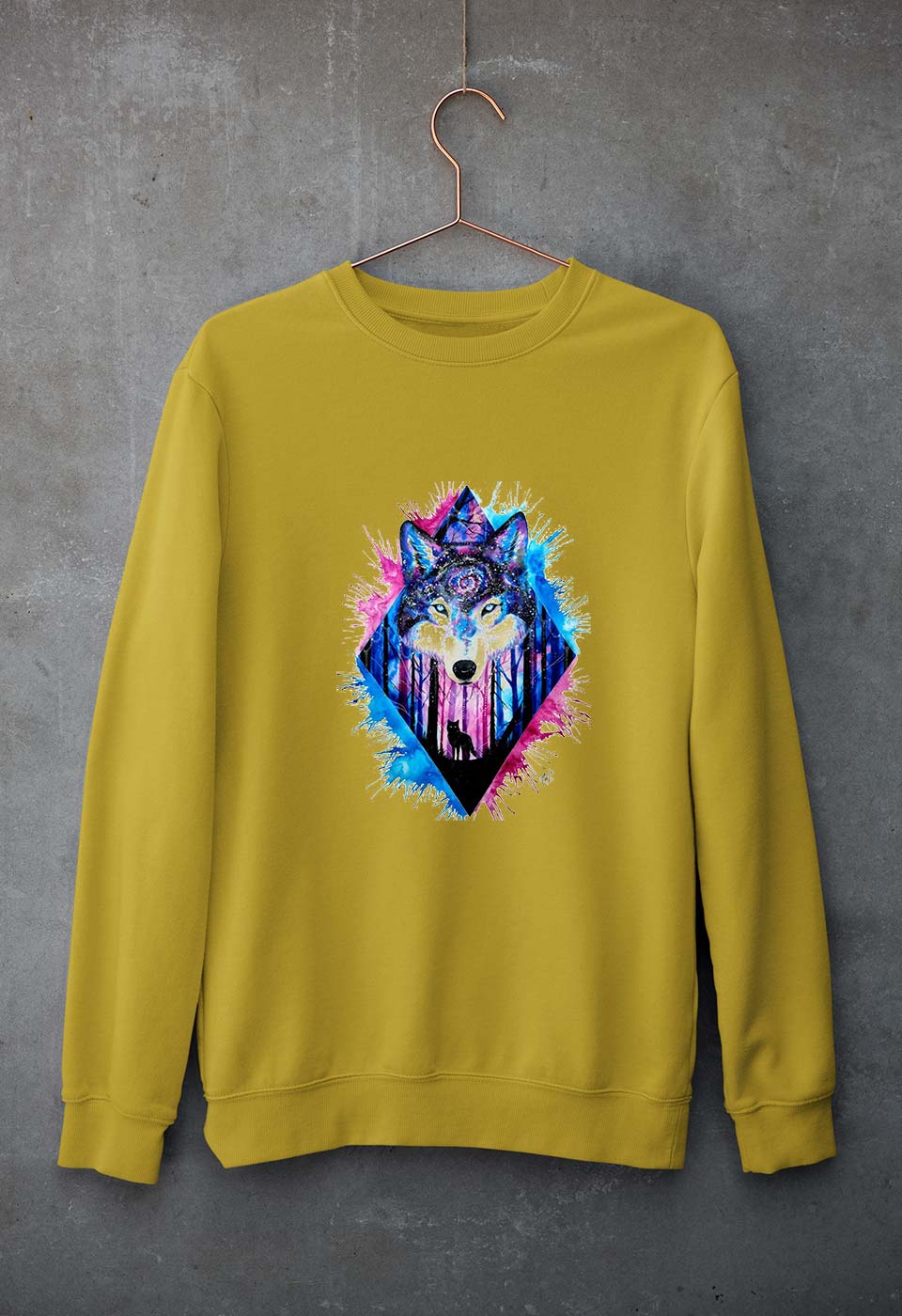 Wolf Unisex Sweatshirt for Men/Women-Mustard Yellow-Ektarfa.online