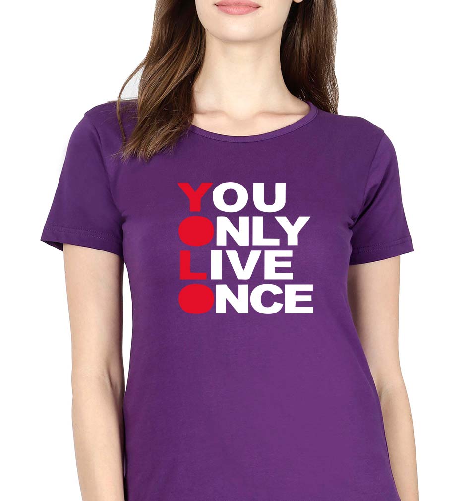 You Live Only Once(YOLO) T-Shirt for Women-Purple-Ektarfa.online